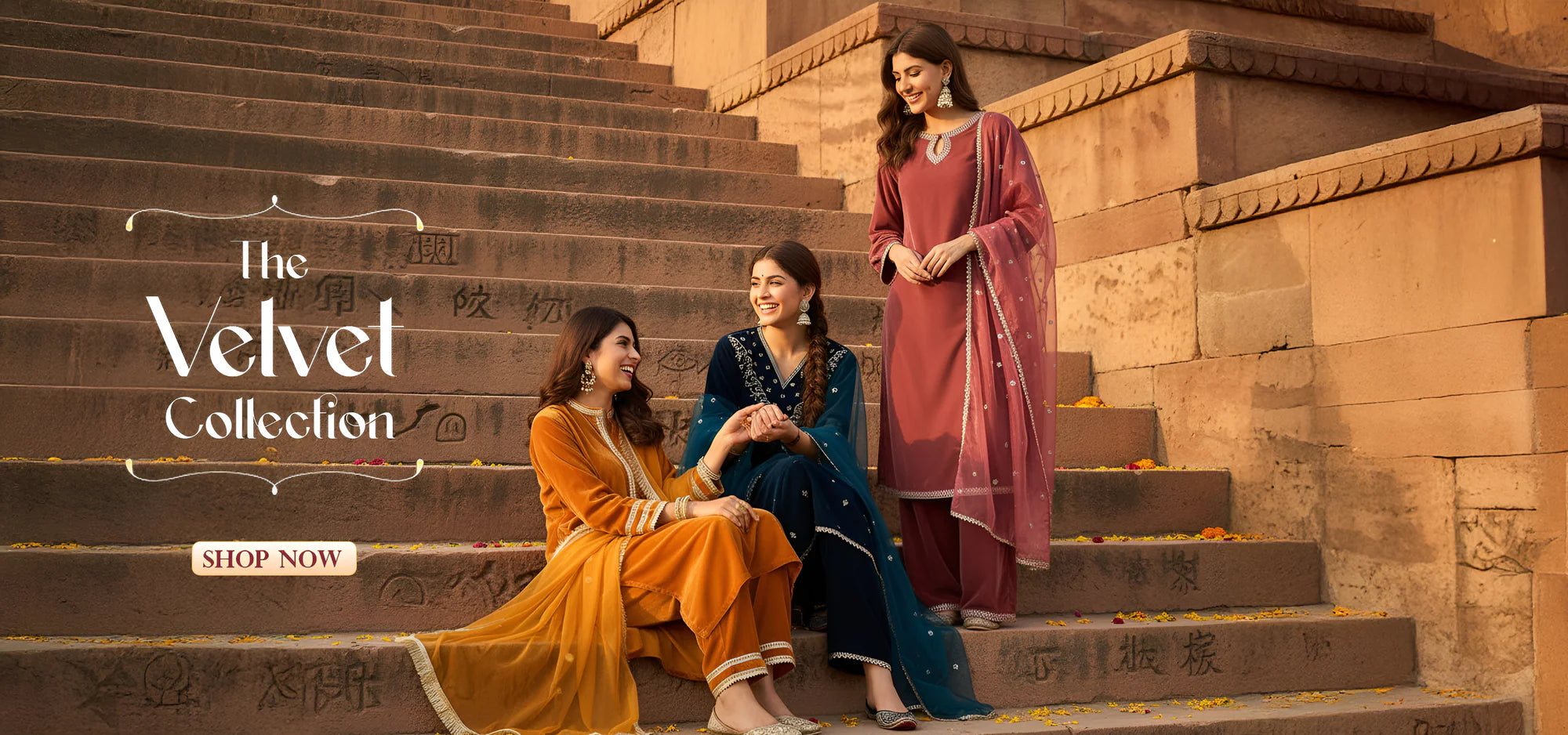 Alia-Cut Red Velvet Kurta, Pant & Net Dupatta Set.