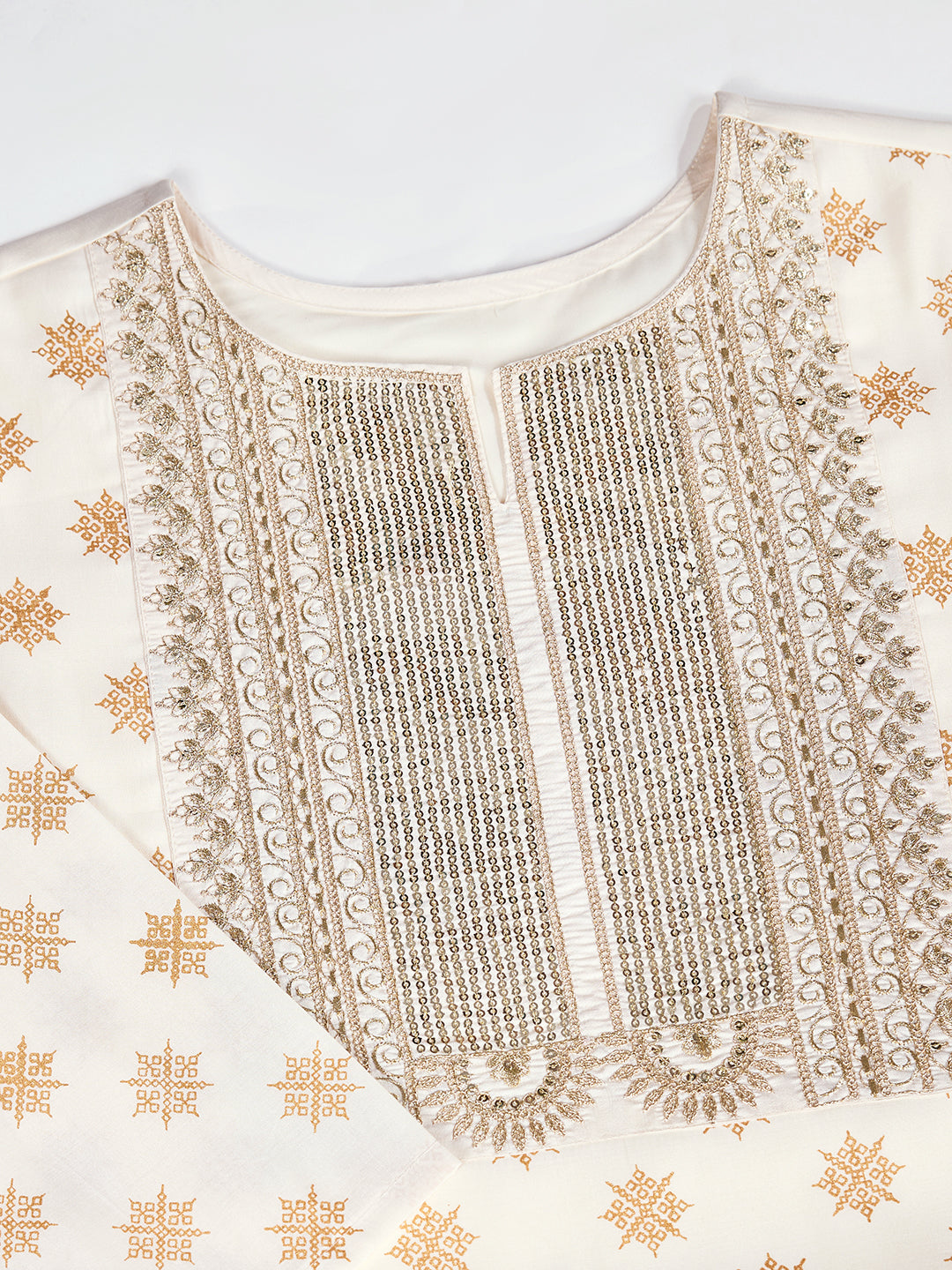 White Foil Printed Embroidered Silk Blend Kurta with Pants & Net Dupatta