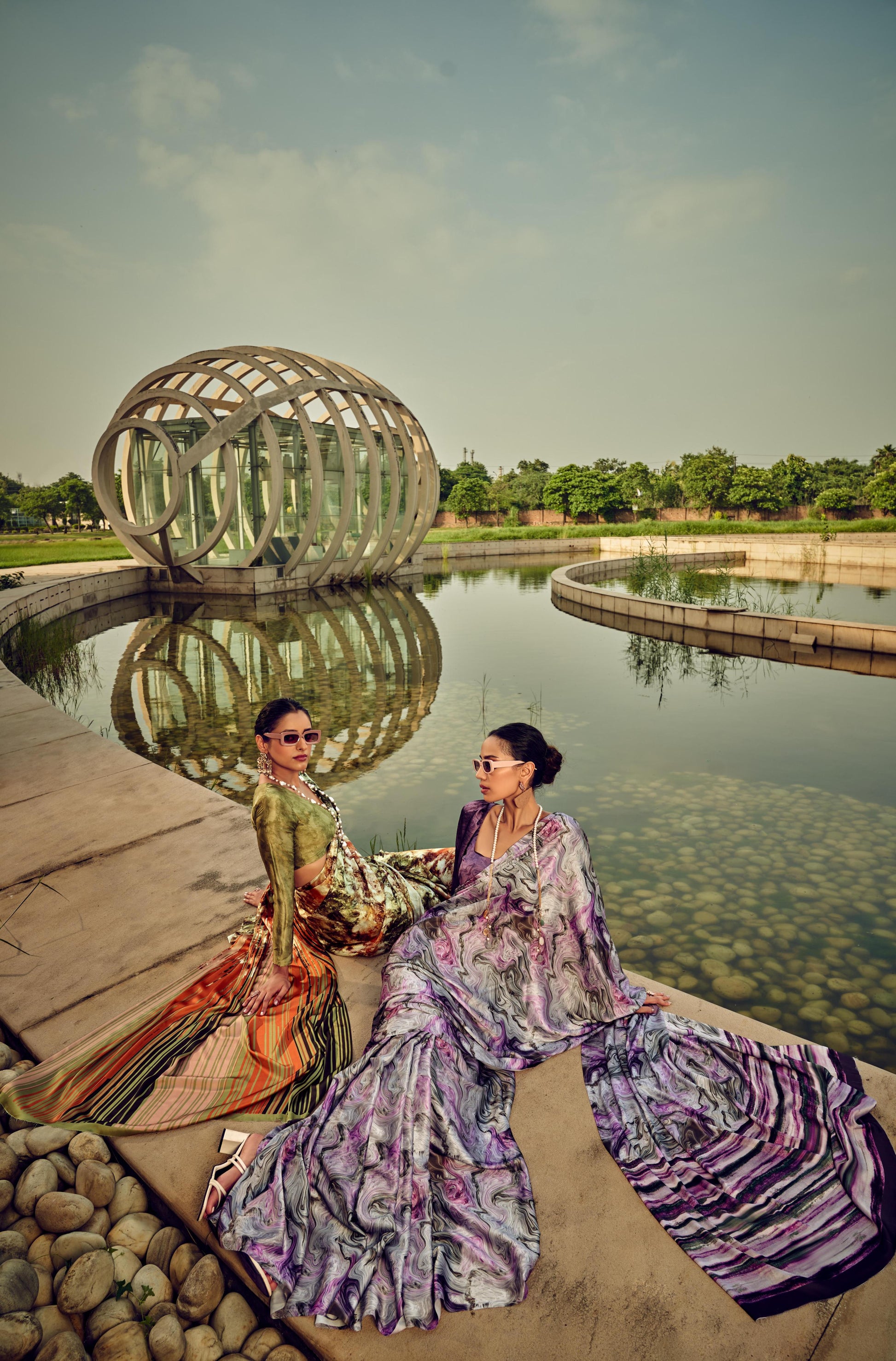 Description : Elevate your ethnic wardrobe with this luxurious Satin Silk Printed Saree, designed to make a statement at every occasion. Crafted from high-quality satin silk, this saree drapes gracefully, exuding a soft sheen and rich texture that feels as elegant as it looks. The intricate prints add a touch of contemporary style, blending traditional charm with modern aesthetics. Ideal for weddings, festive celebrations, and special gatherings, this saree comes with a matching blouse piece, allowing you to customize the look to your style.
