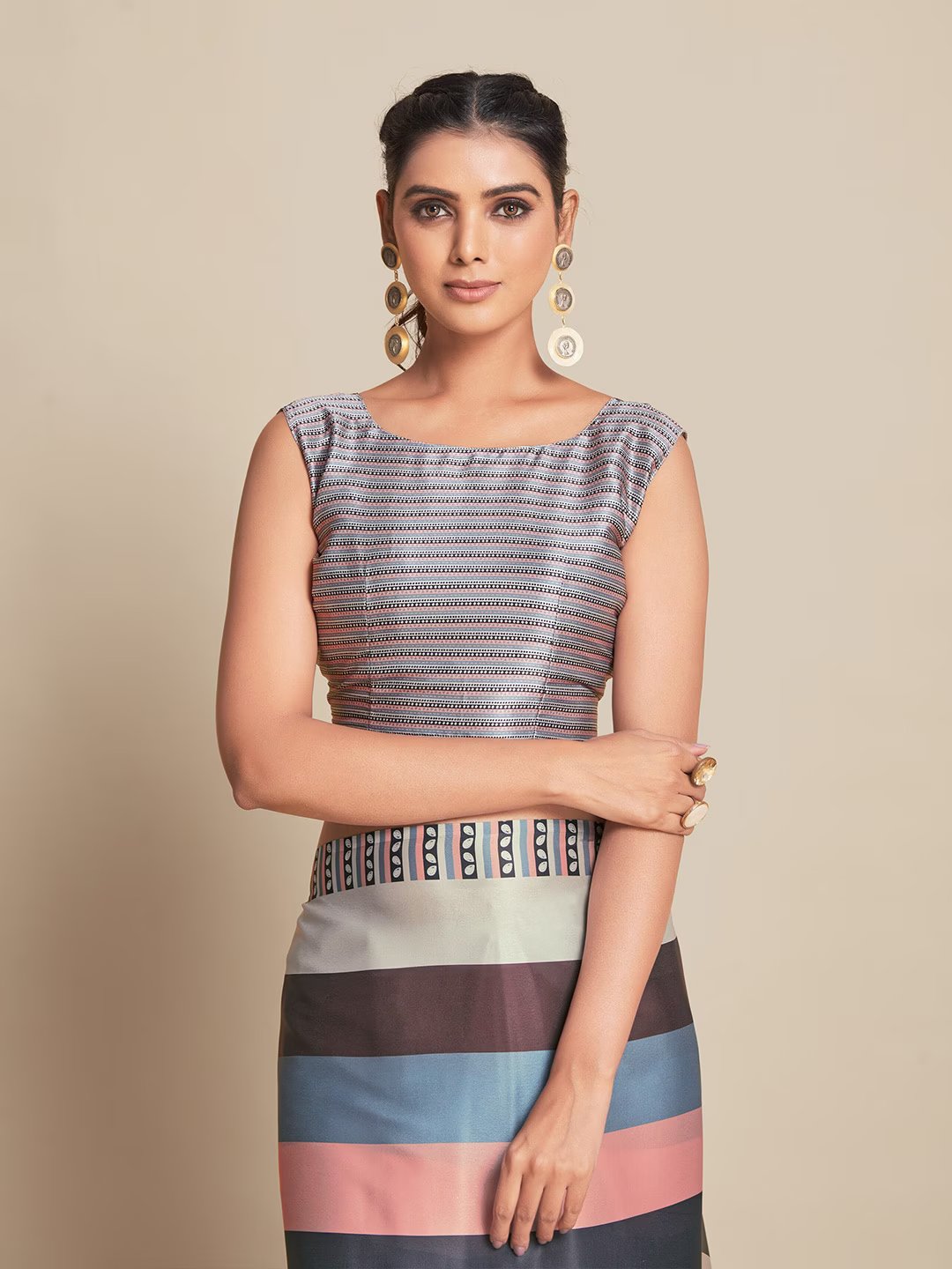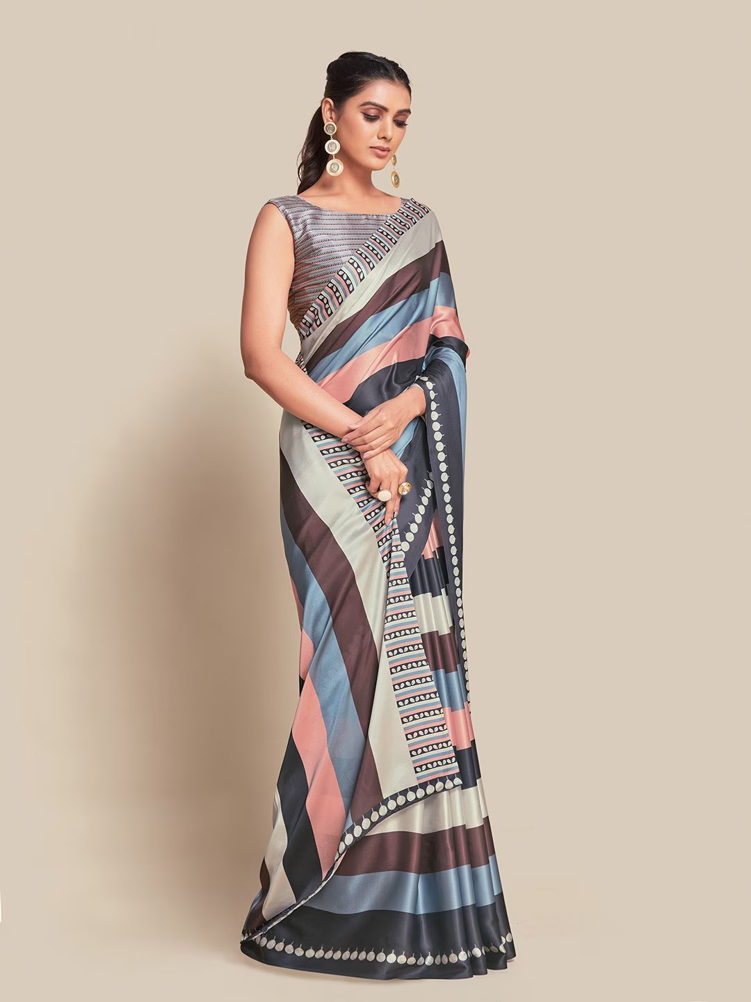Description : Elevate your ethnic wardrobe with this luxurious Satin Silk Printed Saree, designed to make a statement at every occasion. Crafted from high-quality satin silk, this saree drapes gracefully, exuding a soft sheen and rich texture that feels as elegant as it looks. The intricate prints add a touch of contemporary style, blending traditional charm with modern aesthetics. Ideal for weddings, festive celebrations, and special gatherings, this saree comes with a matching blouse piece, allowing you to customize the look to your style.